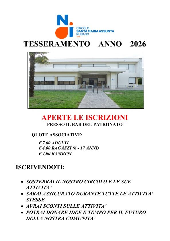 Tesseramento 2026 al CIRCOLO NOI