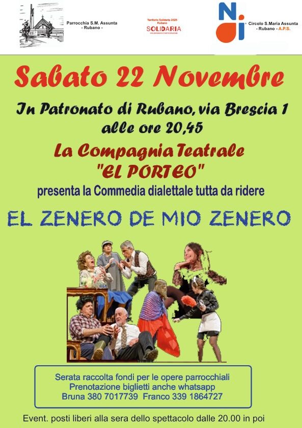 Sabato 22 novembre, alle ore 20.45 in Patronato, la Compagnia Teatrale “El Porteo“ ci presenterà la commedia dialettale tutta da ridere